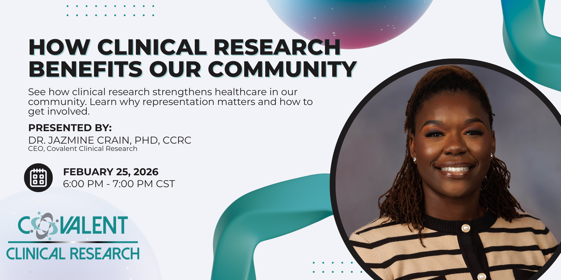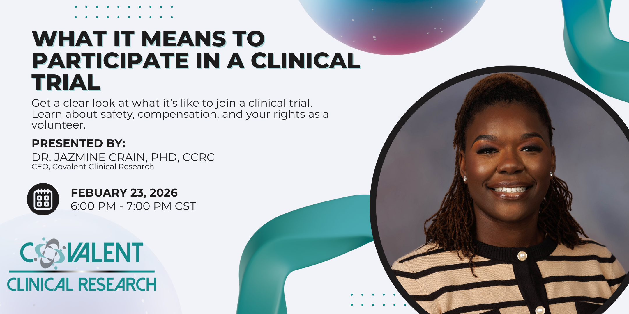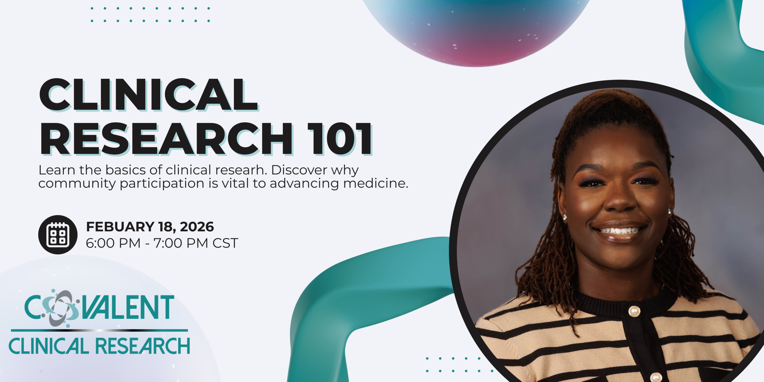 Join us for an easy‑to‑understand overview of clinical research and why it matters for the health of our community. This session breaks down how studies are designed, how new treatments are developed, and the safeguards that protect participants. Whether you’re brand‑new to the topic or just curious, this webinar gives you a clear foundation without the jargon.